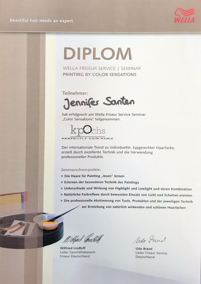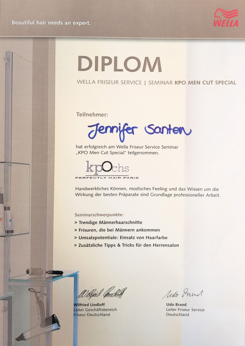 Am 28. Juni 2006 erhielt ich meinen Gesellenbrief im Friseurhandwerk. Doch Stillstand kam für mich nie infrage. Mit großem Engagement und viel Eigeninitiative habe ich mich kontinuierlich weitergebildet: neben meiner beruflichen Tätigkeit, in der Abendschule und sogar während meines Urlaubs.